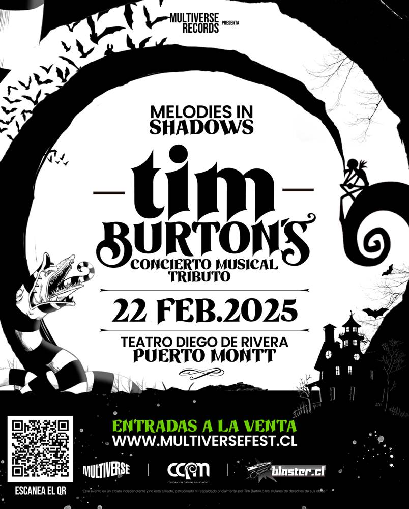 Tim Burton es sinónimo de nostalgia, mundos mágicos, oscuros y conmovedores que han marcado generaciones. Con películas clásicas como: “El extraño mundo de Jack”, “Beetlejuice”, “El Joven manos de tijera”, “Charlie y la fábrica de chocolates” y muchas otras, su legado cinematográfico ha capturado los corazones de millones de personas. Ahora, en un evento musical único, los fanáticos podrán revivir las inolvidables melodías de estas obras maestras en el concierto “Tim Burton’s – Melodies in Shadows”. Las entradas ya se encuentran a la venta en el sitio Multiversefest.cl